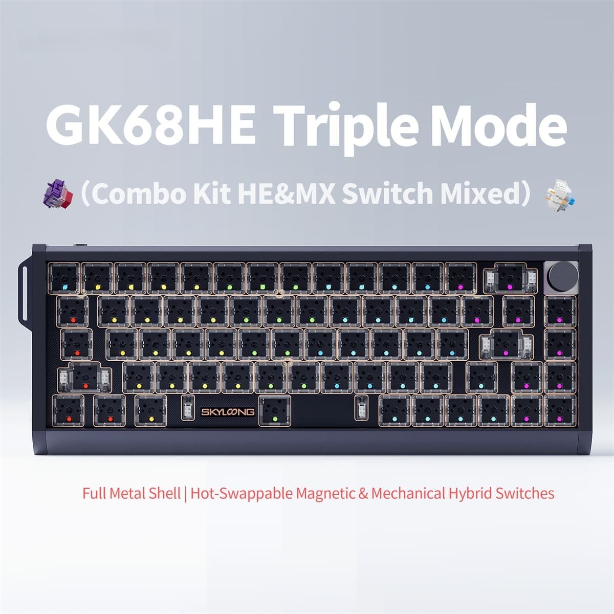 Custom 3-in-1 Mode GK68HE 8K Magnetic / Mechanical Switch Gaming Keyboard Kit Aluminum Case USB Wired / 2.4G Wireless / Bluetooth