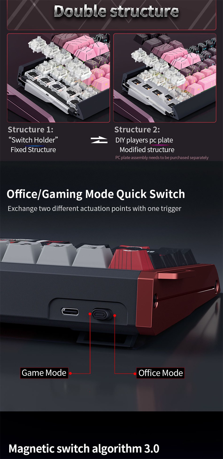 Customizable GK61/68HE 8K Magnetic Gaming Keyboard USB Wired Aluminum Case